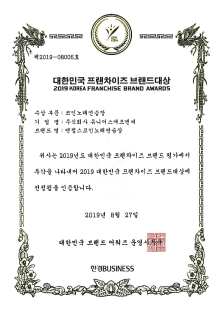 대한민국 프랜차이즈 브랜드 대상 수상